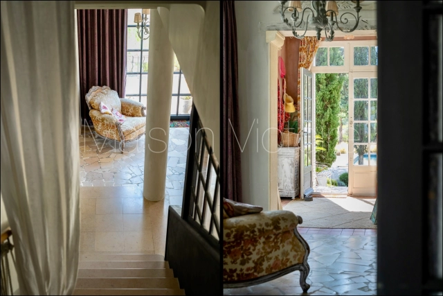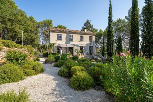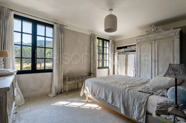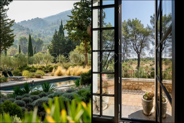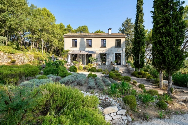 Located in a gorgeous rural setting, with landscaped gardens and unobstructed views of Oppède-le-Vieux and the surrounding Luberon valley, this mid-century bastide-style property combines character, lovely volumes, abundant natural light, and complete privacy. Benefitting from a picturesque Mediterranean garden, a saltwater swimming pool and a self-contained gîte, this 210 m² property offers an ideal retreat in the heart of the Luberon, just a short drive from Coustellet and its shops and weekly market. The villages of Oppède and Maubec are accessible on foot.