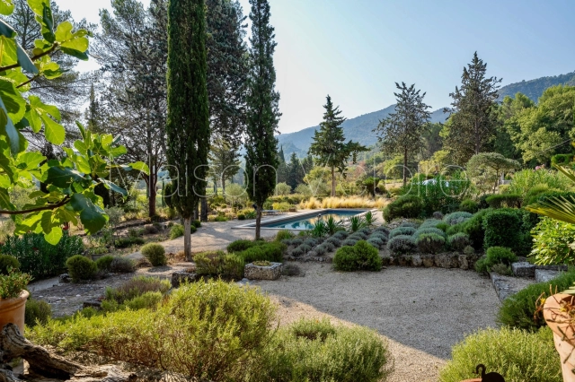 The 3.5-acre grounds have been beautifully landscaped with a great variety of indigenous plants and mature trees, creating a tranquil setting of woodland and Mediterranean plantings. An authentic cabanon ruin adds Provençal charm. A 14.5 m × 3.5 m saltwater swimming pool, fitted with a submerged cover, enjoys a lovely view of the medieval village of Oppède-le-Vieux — which is particularly beautiful when illuminated at night — as well as a far-reaching view of Mont Ventoux. Additional outbuildings include a large atelier with newly installed double-glazed doors, and a tool shed. The surrounding land is protected farmland and natural woodland, ensuring the peace and quiet of the property.